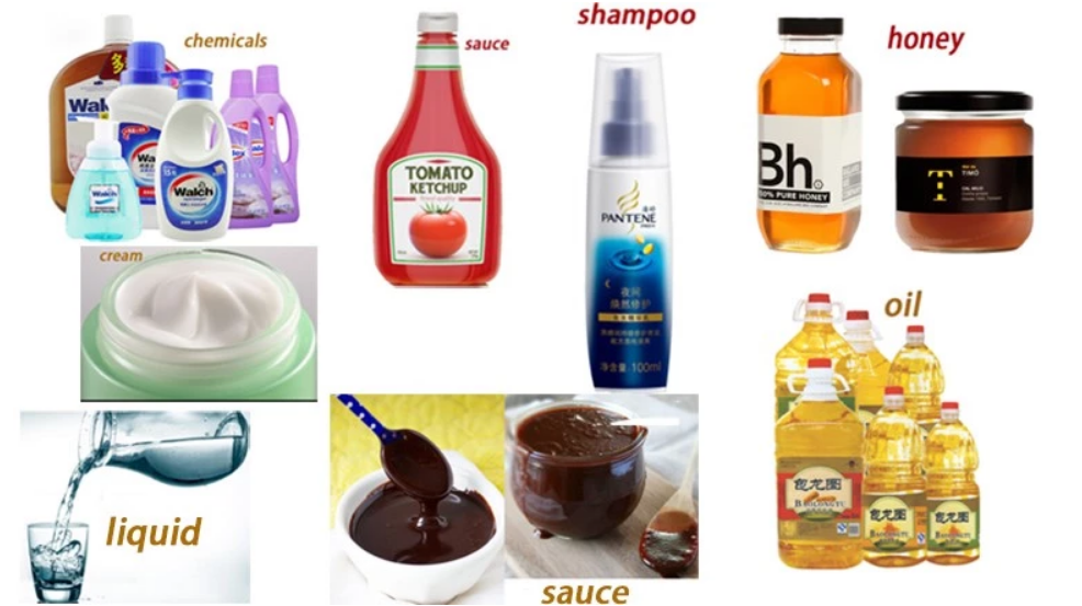 Жартылай тұтқыр және тұтқыр сұйықтықтар; мысық, қыша, сироп, сальса, майонез, бал, жержаңғақ майы, мармелад, тұздықтар, ерін бальзамы, сусабын, қалың сабын, сәндеуге арналған гельдер, бет маскалар, балауыз, желім, май, герметиктер, силикон және басқалары